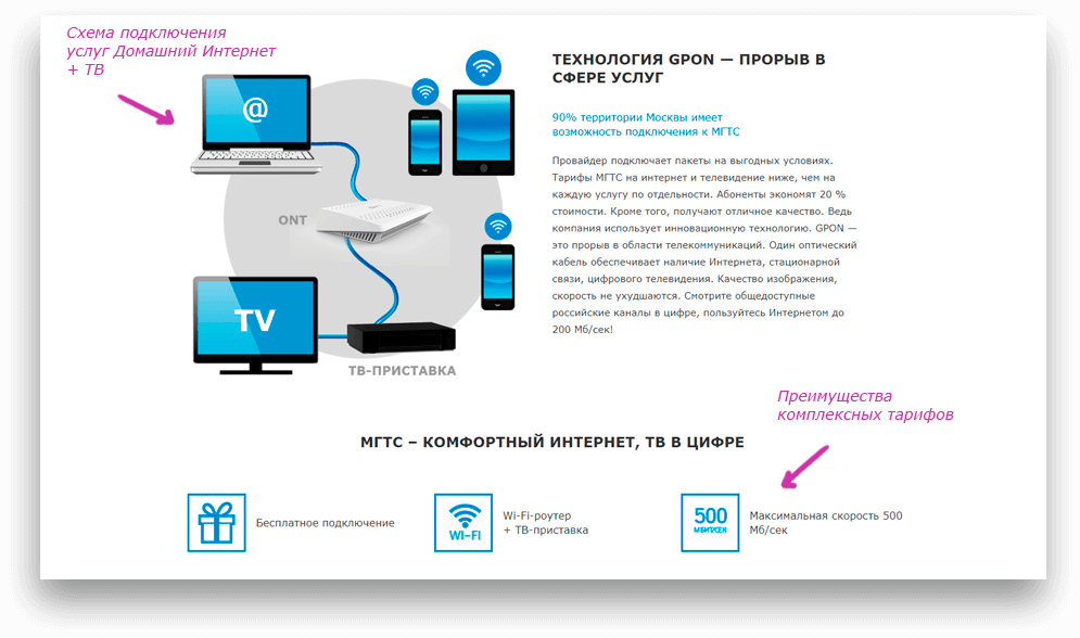 Как и в случае с интернет-подключением, МТС даёт возможность получить вместе с Интернетом и ТВ ещё и пакет мобильной связи. Данная услуга лишь незначительно увеличивает стоимость тарифа, при этом давая абоненту возможность звонить, куда ему требуется. А ведь без мобильной связи сейчас тоже обойтись мало кто может.